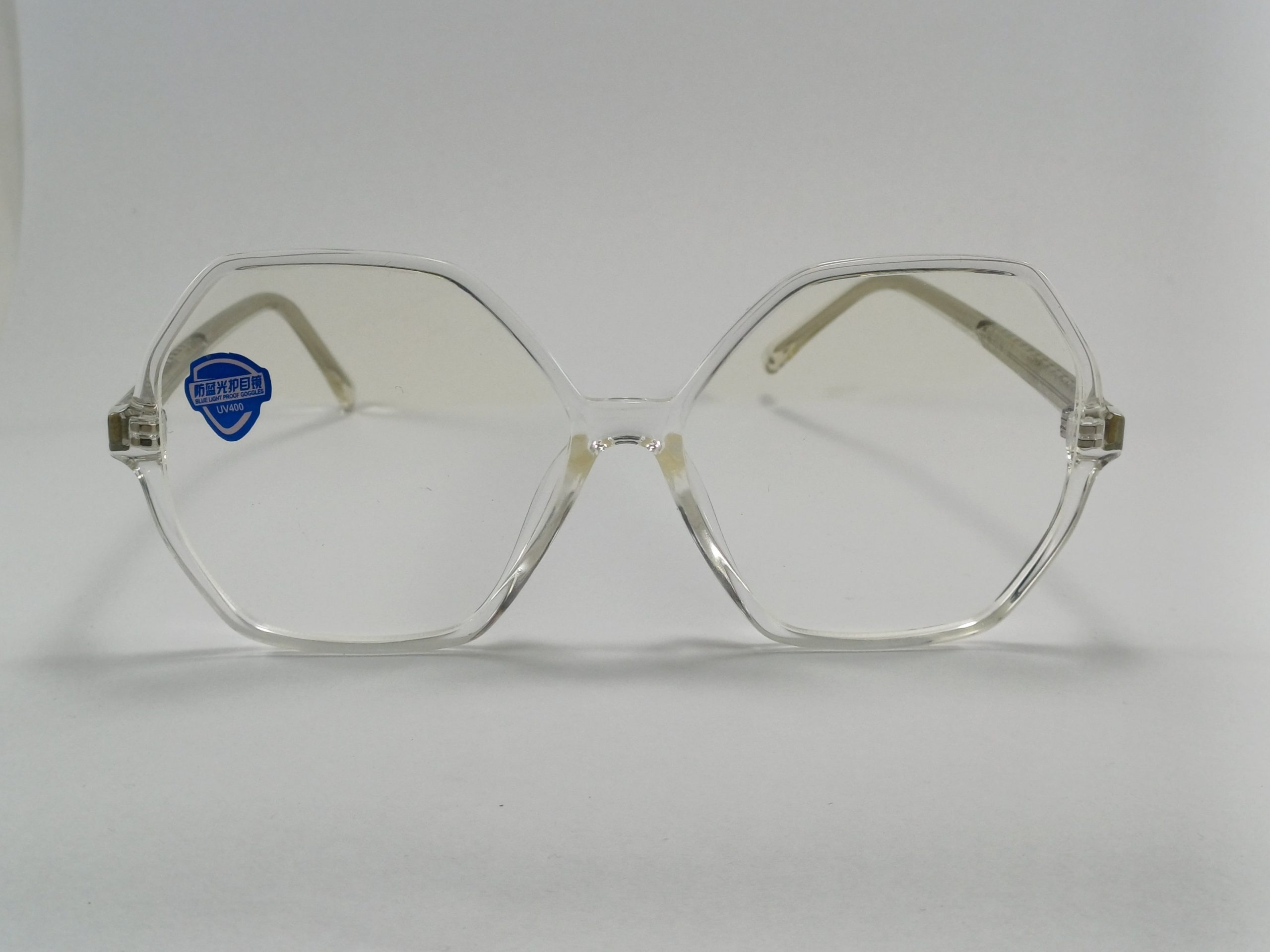 عینک بلوکات چند ضلعی مخصوص مطالعه و کامپیوتر رنگ شفاف با جلد و دستمال