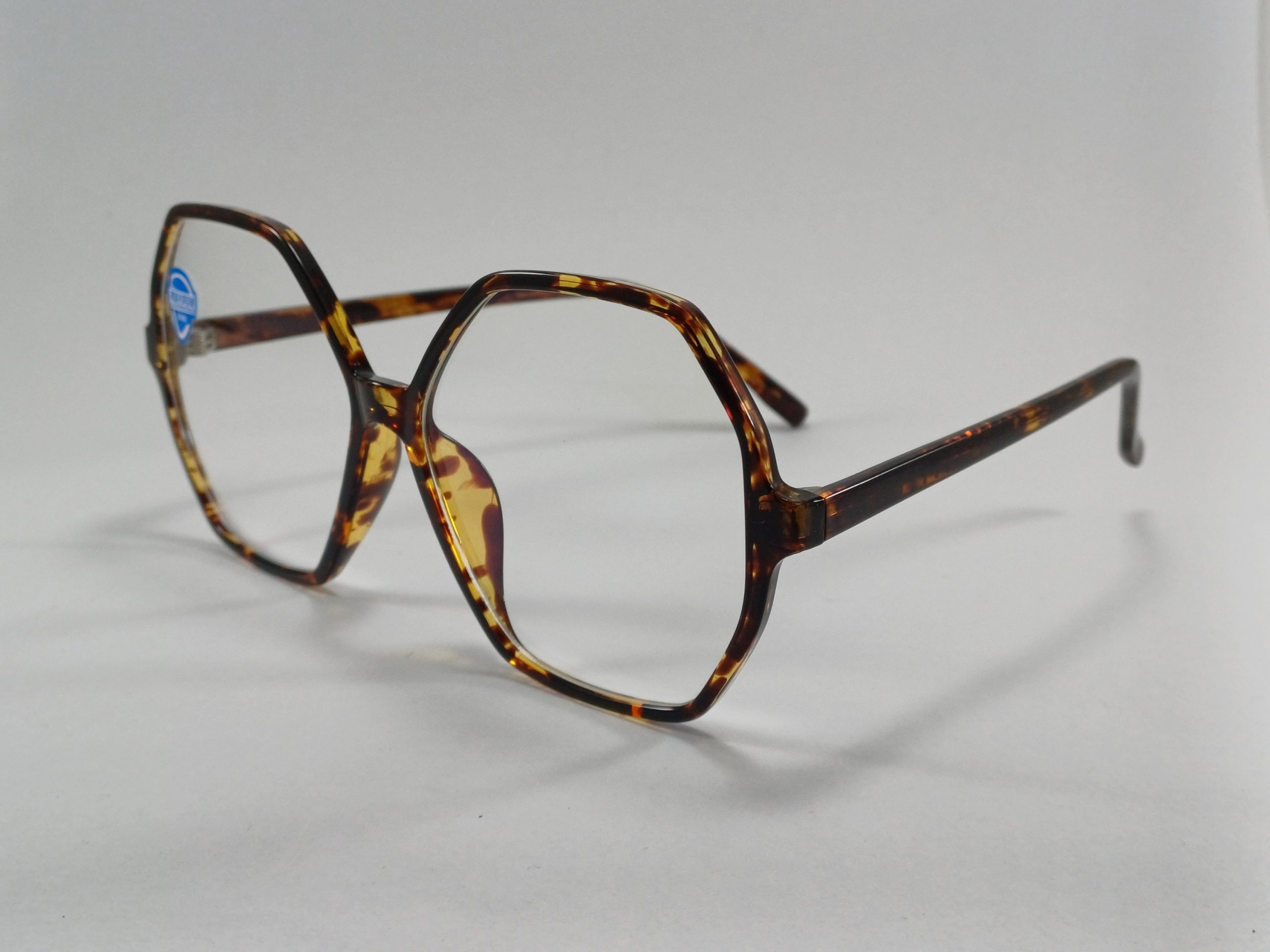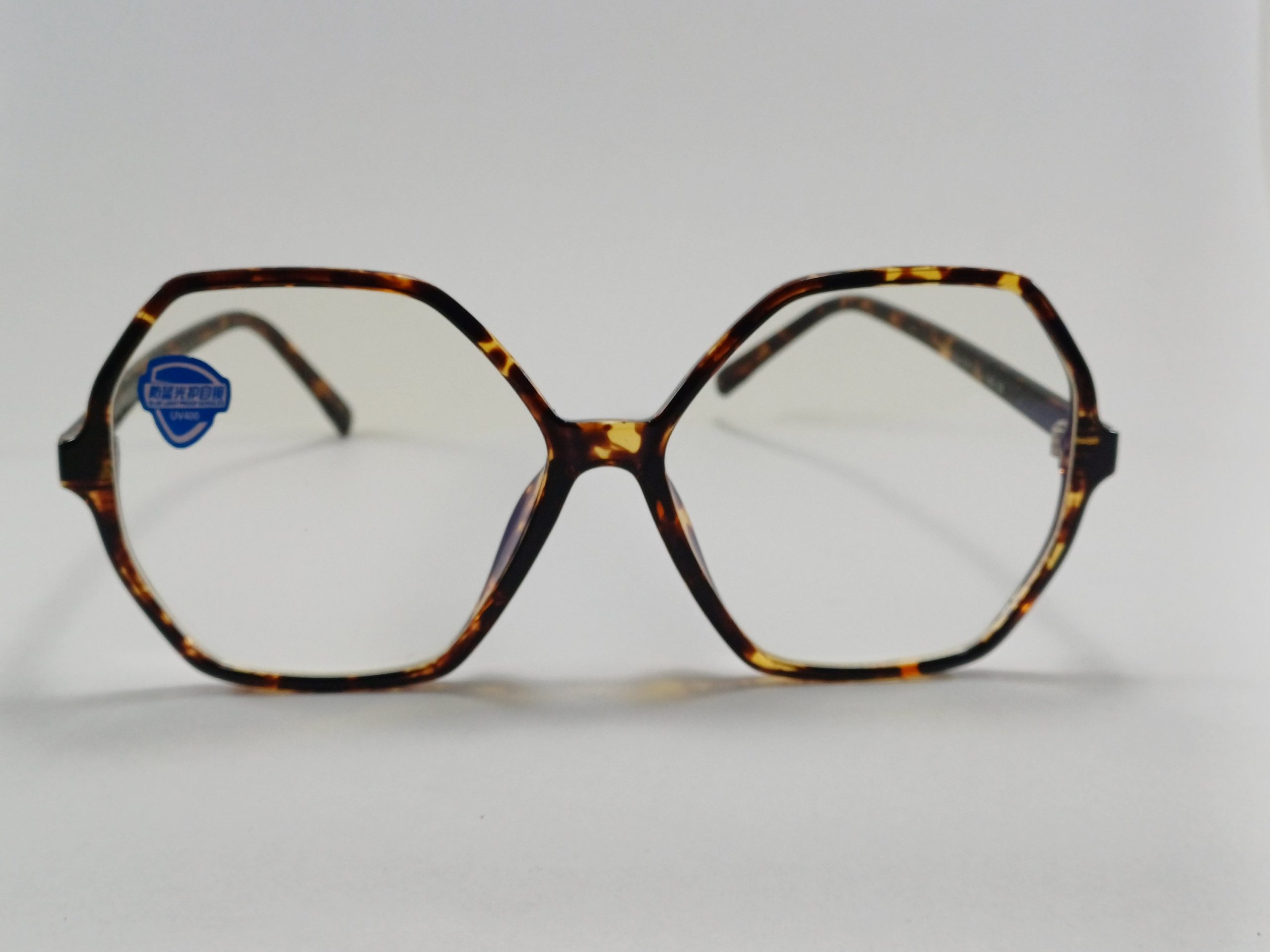 عینک بلوکات چند ضلعی مخصوص مطالعه و کامپیوتر رنگ تایگر قهوه ای با جلد و دستمال